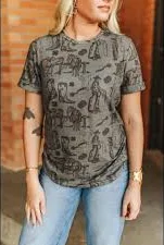 We are pleased to offer our FAVE TEE in a new pattern. The basic tee fit is outstanding, and our customers have been loving this comfortable cut. Fabric: 60% Cotton, 40% Polyester. Fit Check: Runs true to size and has stretch.